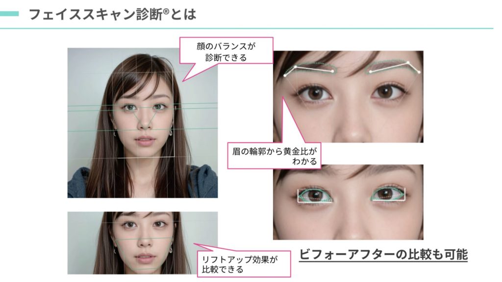 今回導入するAIフェイススキャン診断®︎は、スマートフォンやタブレットで撮影した顔画像をAIが解析。輪郭やパーツのバランスに加え、問診内容(性別・生活習慣・希望など)を組み合わせ、最適なヘアスタイルやカラーを自動提案します。さらに、施術前に仕上がりを可視化できる「ビフォーアフター機能」や、高齢者向けに年代別のスタイル提案を行う機能も搭載されています。