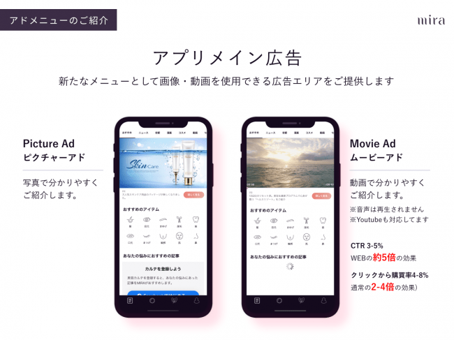KINDLER株式会社は、自分に合ったライフスタイルを築くためのサービス『mira(ミラ)』にて、美容・ライフスタイル系サービス(ブランド・サロン・クリニックなど)向けにユーザーとの接点を増やすための広告枠の提供をWEB・アプリにて開始致しました。